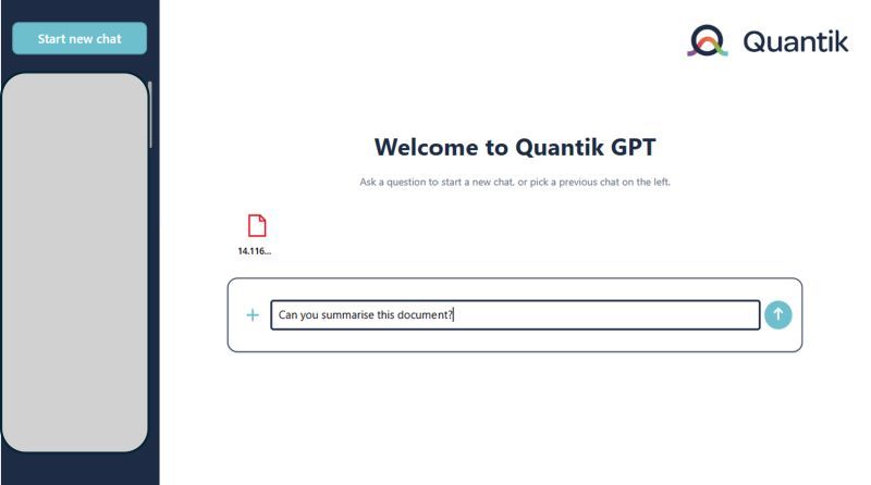 We have refined the end-to-end workflow to ensure it is fast, clean and robust. Quantik GPT determines when to reference an uploaded document and when to draw on broader knowledge, delivering answers that are relevant, structured and concise.