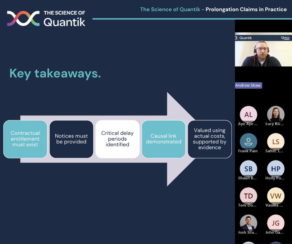 This month's Science of Quantik webinar was hosted by Associate Director Andrew Shaw where he covered Prolongation Claims in Practice, From Entitlement to Recovery.