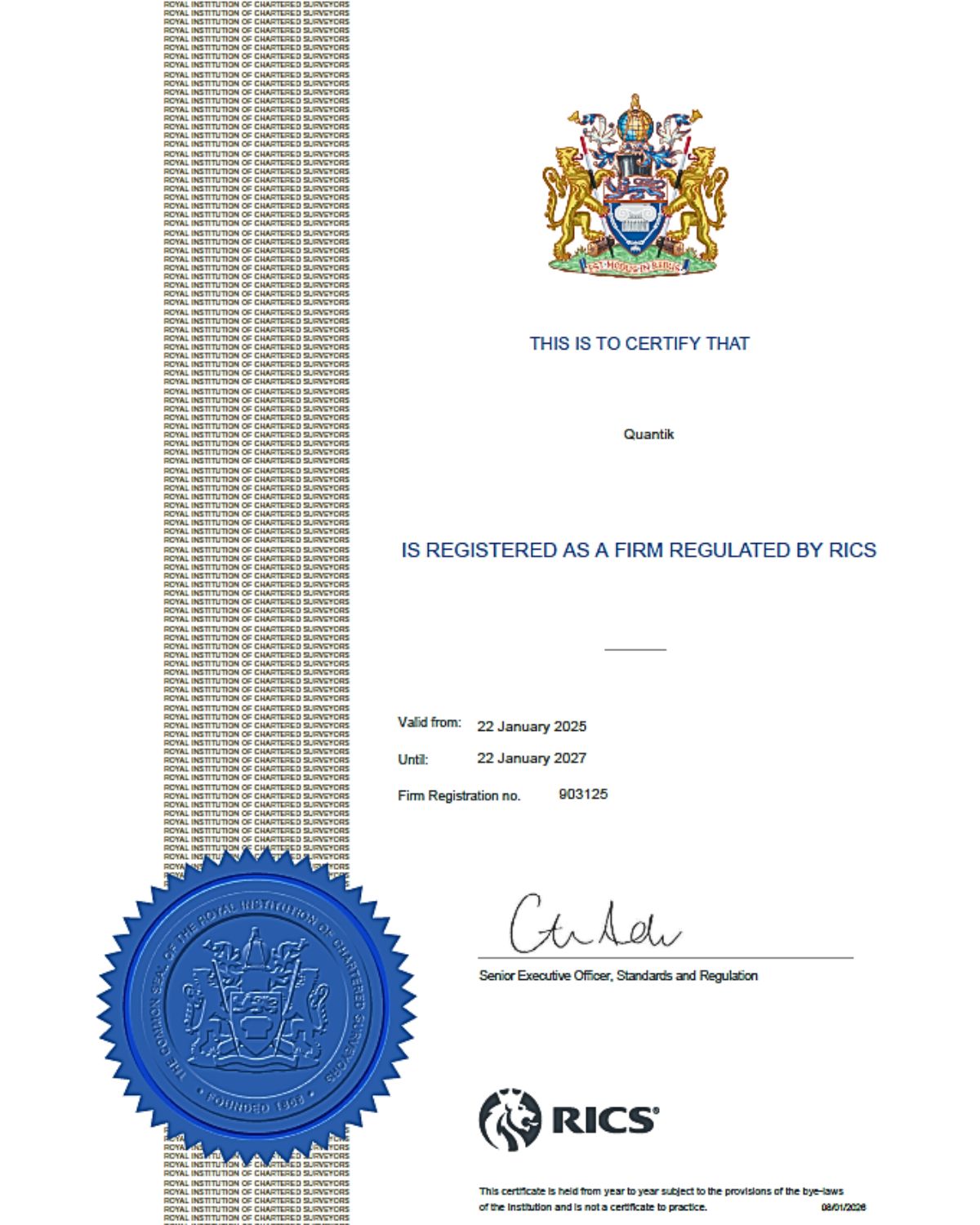 We are pleased to confirm that Quantik has renewed its RICS accreditation.